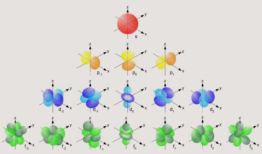 - La forma del orbital, o el número de asientos del piso. En los átomos, la forma del orbital define cuánta energía de rotación tiene el electrón, ya que define como girará. Cuantos más pares de asientos disponibles haya en el piso, más grande tendrá que ser, y por tanto «más pereza» nos dará tener que buscar un sitio en él.